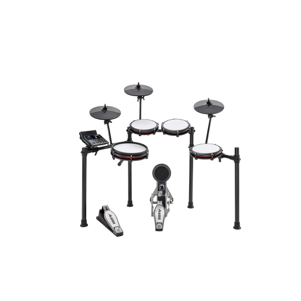 La Alesis Nitro Max Mesh Kit es una batería electrónica pensada para practicar, aprender y tocar con comodidad sin sacrificar sensación real. Sus pads de malla ofrecen una respuesta natural y silenciosa, ideales para tocar en casa o en espacios reducidos. Cuenta con un módulo versátil con múltiples sonidos y kits preconfigurados, permitiendo explorar distintos estilos musicales. Su estructura es firme y ajustable, adaptándose fácilmente a la posición de cada baterista.