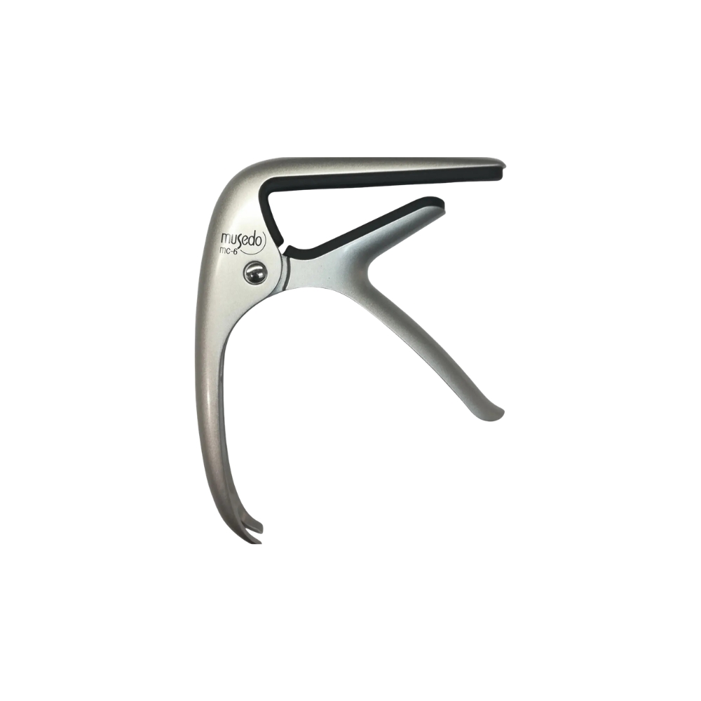 Capotraste liviano y resistente, fabricado en aluminio. Diseñado para guitarra criolla, brinda una presión uniforme sobre las cuerdas, asegurando una afinación estable y sin zumbidos. Sistema de colocación rápida y práctica, ideal para uso diario.