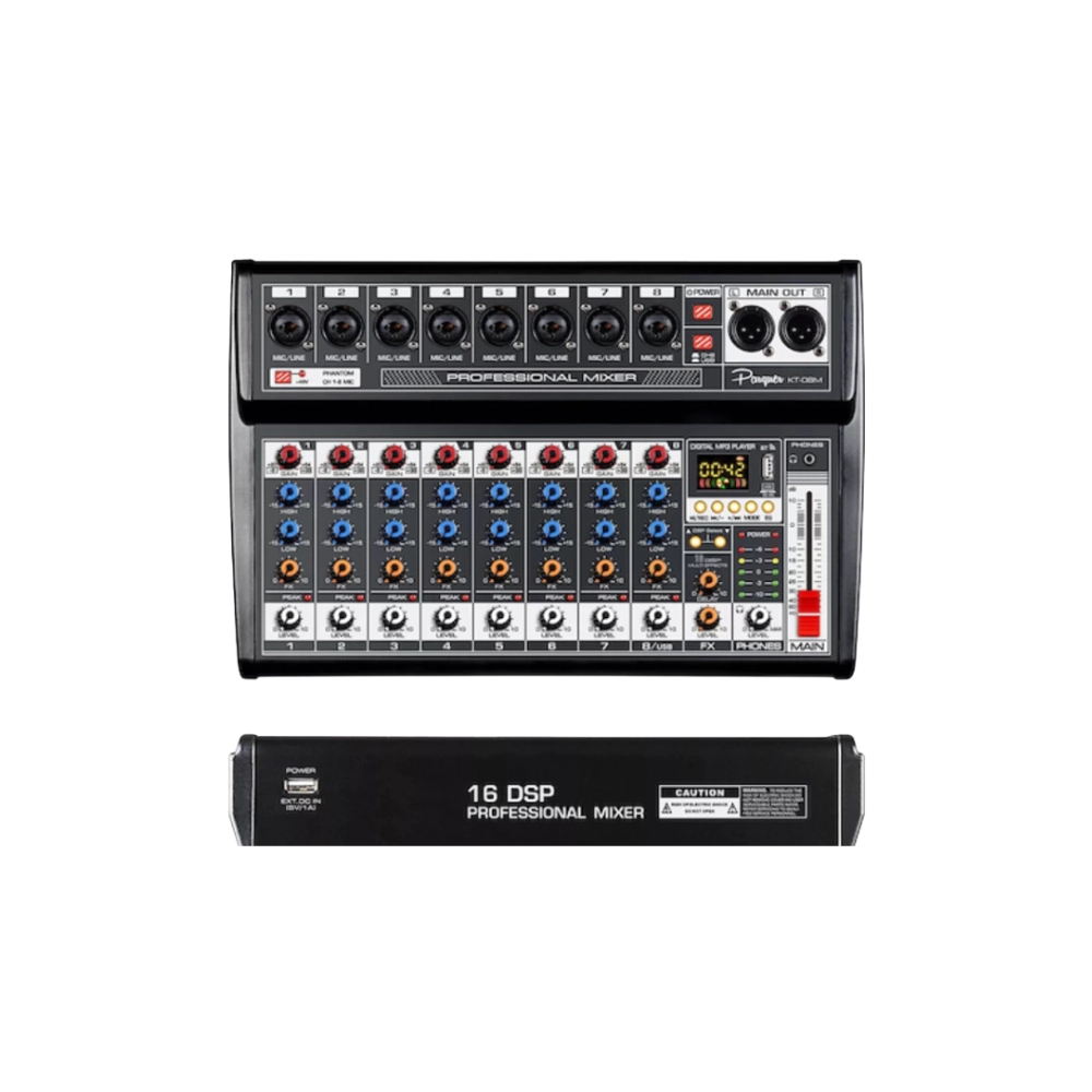 «La Parquer KT-08 es una consola de mezcla profesional y portátil, ideal para músicos, DJs y eventos que buscan una herramienta completa, confiable y moderna.