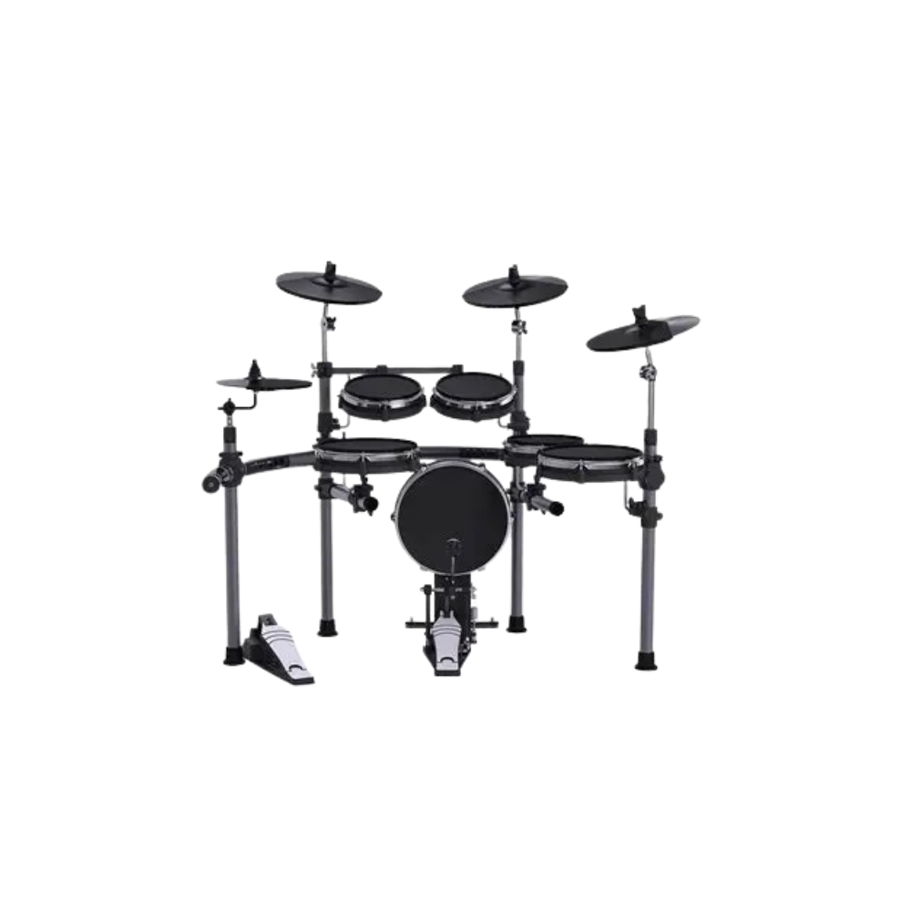 La Medeli YoDrum es una batería electrónica pensada para quienes buscan la sensación más parecida a una acústica. Sus parches de malla ofrecen una respuesta silenciosa, suave y muy sensible, ideal para practicar sin molestar y sin perder naturalidad.